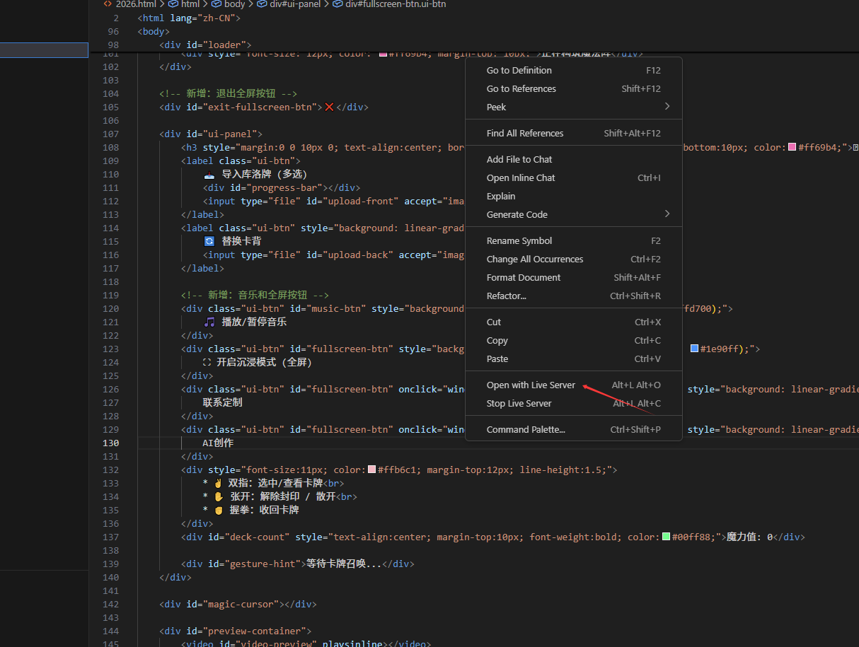 六、运行程序,单击鼠标右键,选择open with live..... 即可